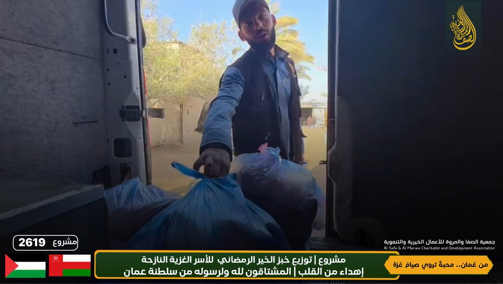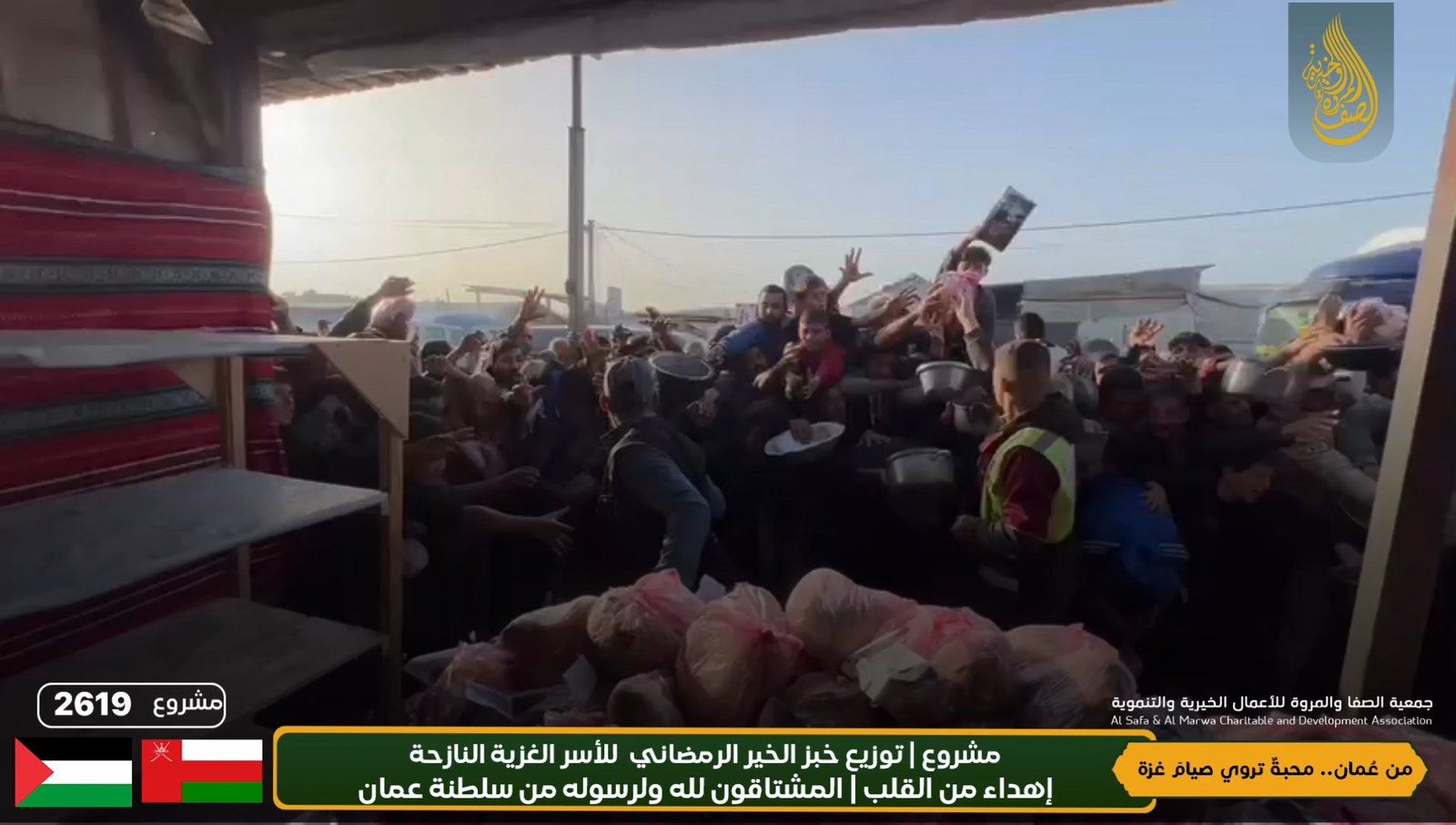 بفيضٍ من البركةِ والجودِ العُماني، نفذت جمعية الصفا والمروة للأعمال الخيرية والتنموية حملة "توزيع خبز الخير الرمضاني" بتاريخ 18 فبراير 2026، وذلك ضمن مساعيها المستمرة لتوفير القوت الأساسي للأسر النازحة في ظل الحصار واشتداد الأزمة المعيشية.