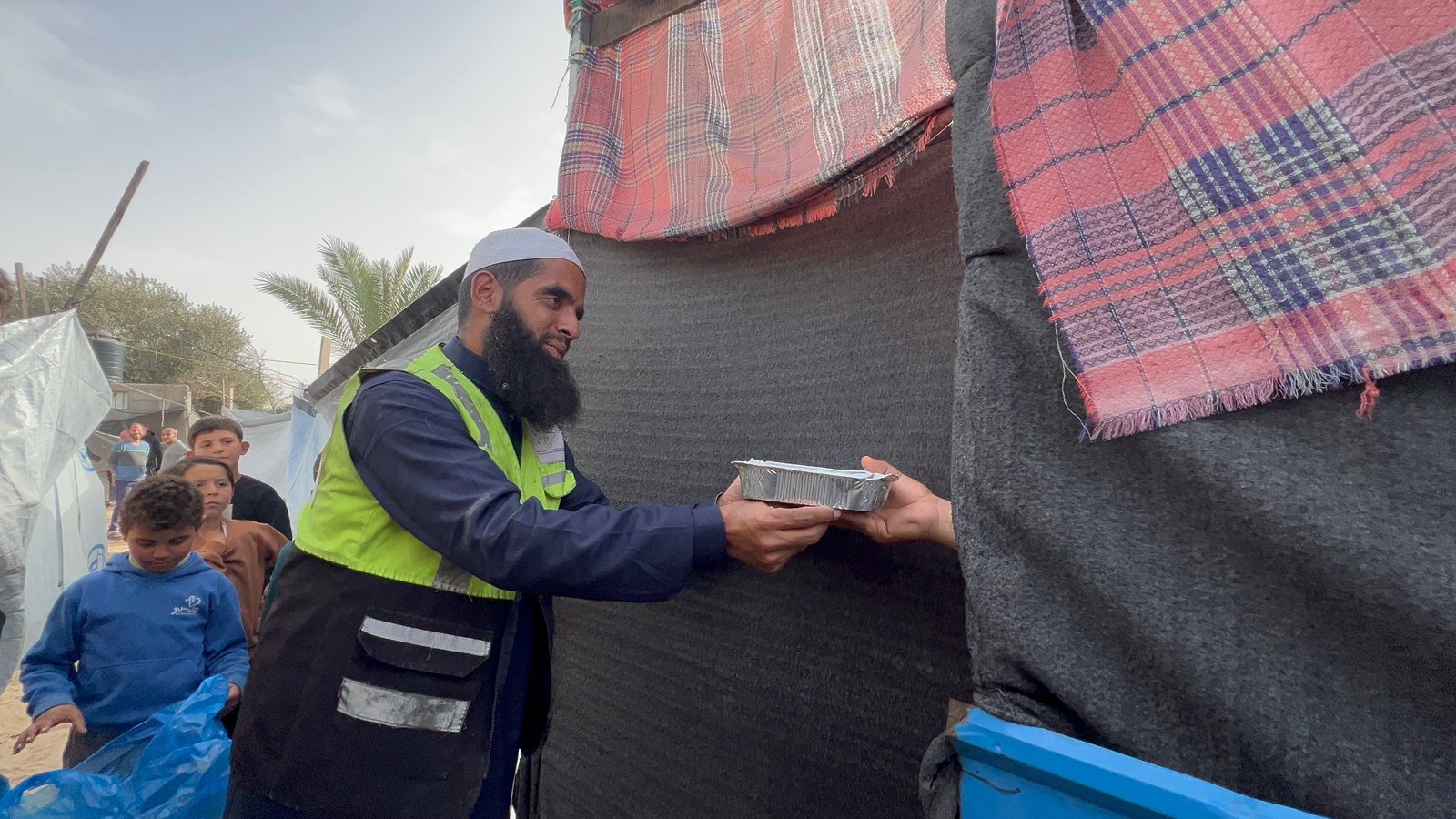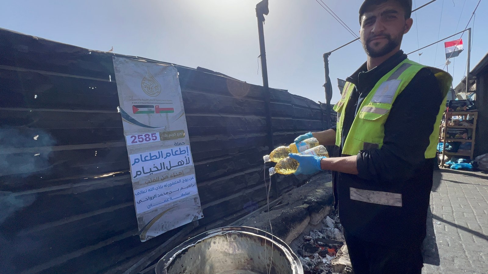 إطعام الطعام: توزيع وجبات ساخنة (قدر أرز ودجاج) لـ 80 فرداً في مخيمات شارع روني.