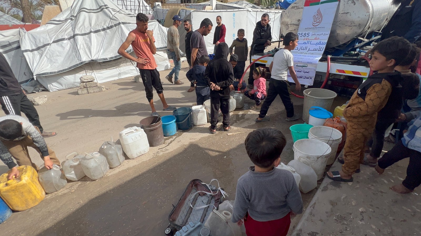 سقيا الماء: توريد مياه عذبة صالحة للشرب لـ 1000 فرد في مخيمات بوابة جامعة الأقصى.