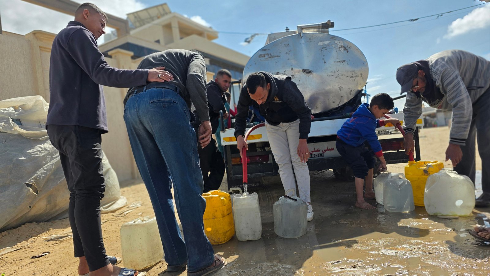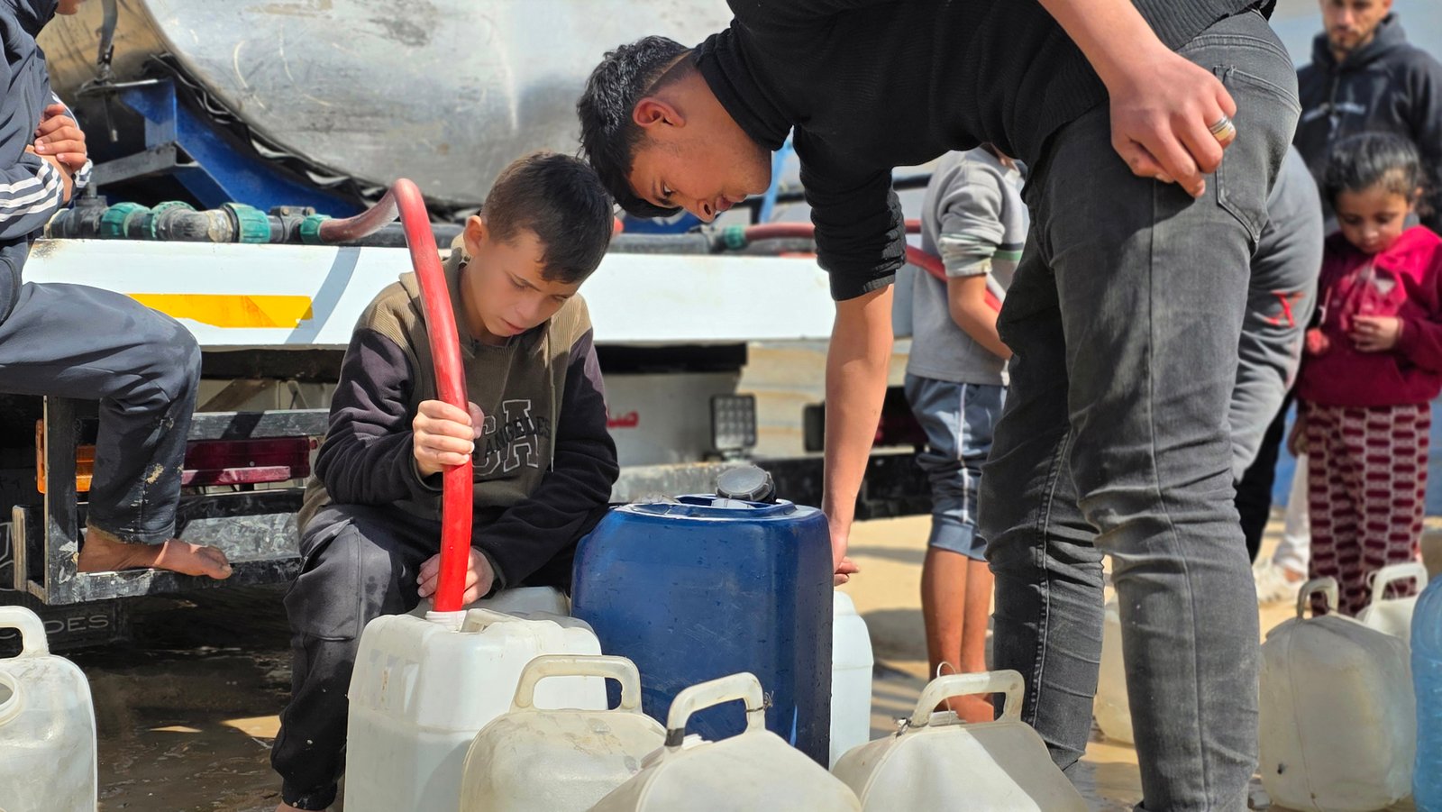 تم تزويد المخيم بصهاريج المياه العذبة وتوزيعها على العائلات لضمان وصول المياه لكل خيمة، مما خفف عن كاهلهم عناء البحث والانتظار لساعات طويلة. جاء هذا العمل بتمويل كريم من المشتاقون لله ولرسوله (إهداء من فاعلة خير) - سلطنة عُمان. نسأل الله العظيم أن يكتب لها أجر كل قطرة ماء روت ظمأ طفل أو مسن، وأن يبارك في عمرها ومالها ويجعل هذا العمل برداً وسلاماً عليها كما كان برداً وسلاماً على أهلنا في غزة.