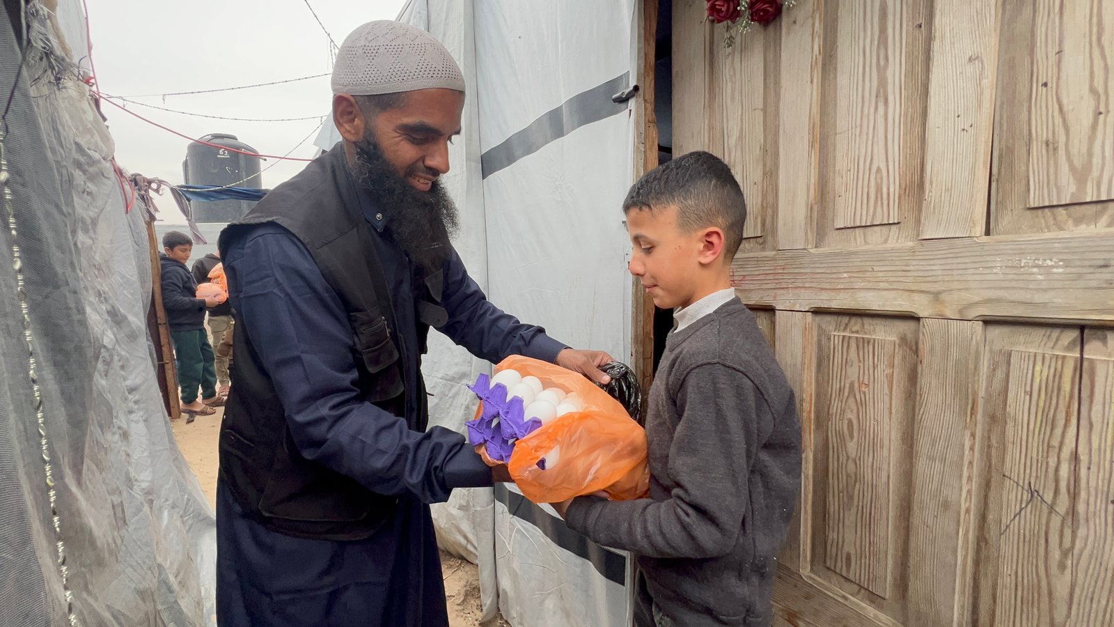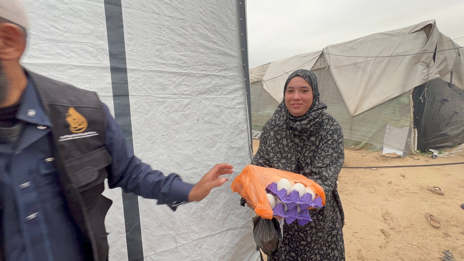 قامت الطواقم الميدانية بتجهيز وتوزيع حصص غذائية متكاملة شملت (طبق بيض + دجاجة مجمدة) لـ 103 أسر نازحة، بإجمالي 515 مستفيداً في "مخيم الأنتينة" بمواصي خان يونس. يهدف هذا التدخل الميداني إلى توفير العناصر الغذائية الأساسية للأطفال والعائلات الذين يعانون من نقص حاد في الغذاء بسبب الحصار والنزوح.