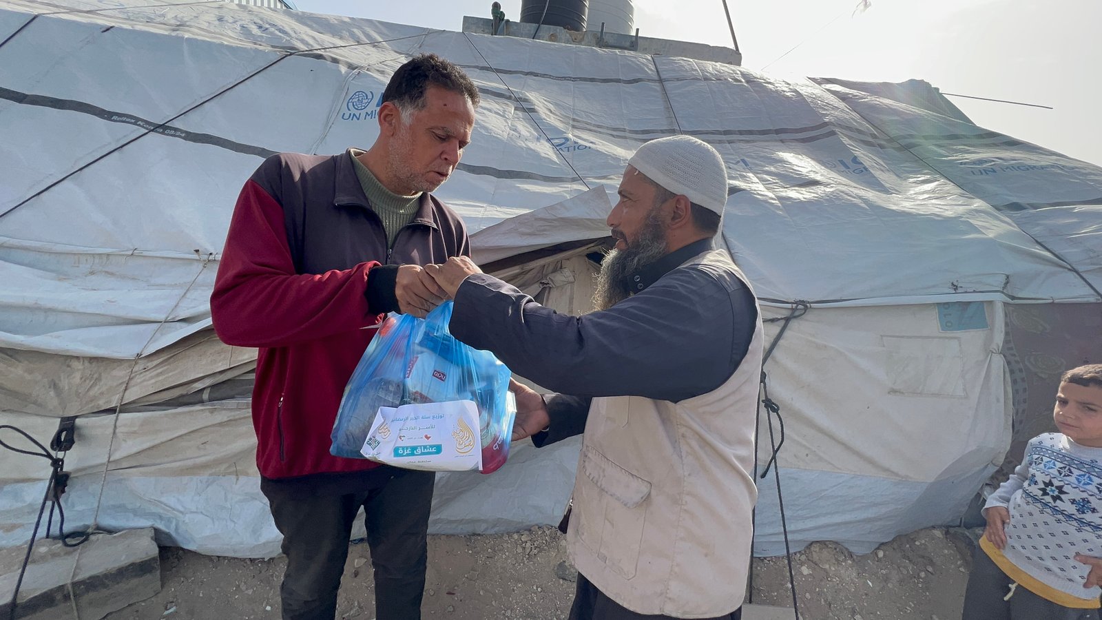 قامت الفرق الميدانية بتجهيز وتوزيع 40 طرداً غذائياً متكاملاً يحتوي على السلع الأساسية والمواد التموينية اللازمة لشهر رمضان. استهدف المشروع 40 أسرة نازحة (بإجمالي 200 فرد) في "مخيم الحياة" بمواصي خان يونس. تأتي هذه الحملة لضمان توفر سحور وإفطار العائلات التي تعاني من انقطاع الدخل وغلاء الأسعار، ولإسناد صمودهم في هذه الأيام المباركة.